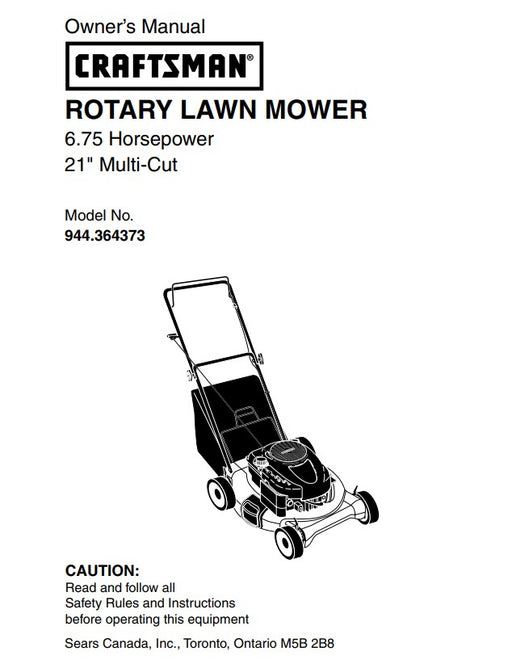 944.364373 Manual for Craftsman 21" Multi-Cut Lawn Mower